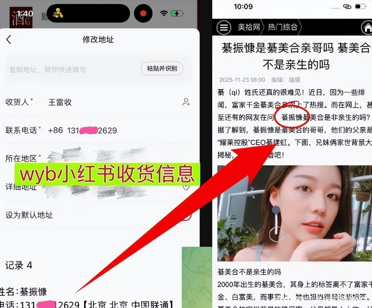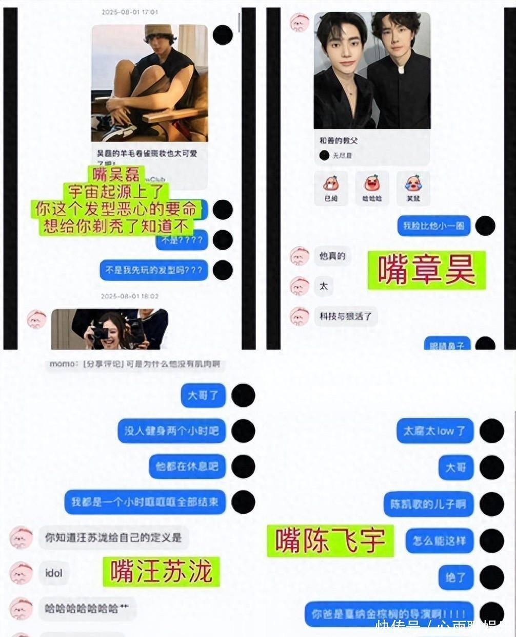 就在今天,有网友爆出了一堆聊天记录,里面的主人公说是顶流男星王一博和綦美合,那些照片中的两个人差不多把娱乐圈明星都“嘴”了一遍,吴磊、汪苏泷没逃过一劫,就连鹿晗也跟着受“牵连”,一开始网友并不选择相信,但是到最后面网友发现还有一张某社交软件上的收货地址,那上面的名字写着綦振糠。