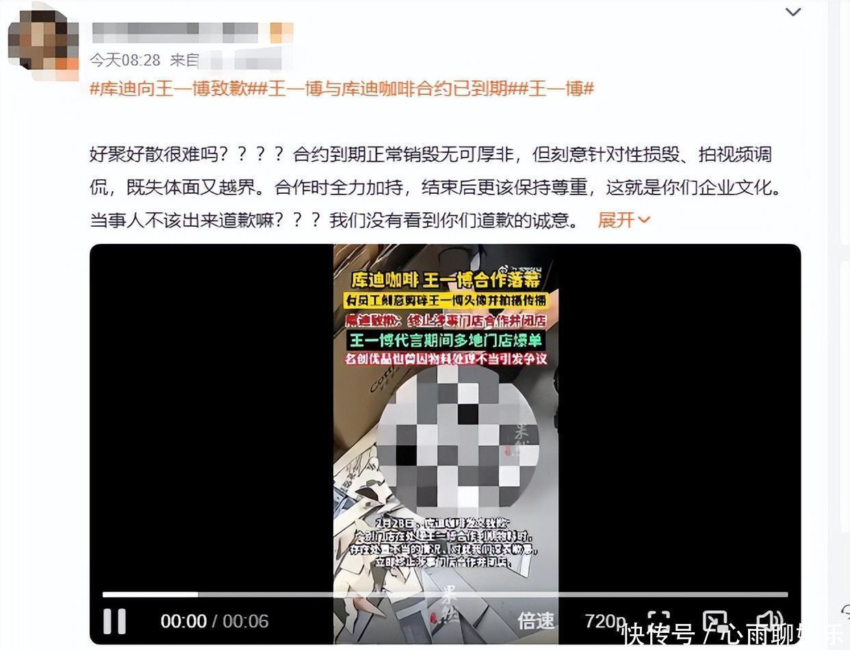 相信很多人去咖啡店都有可能看到王先生的代言海报,合约到期之后那些物料一般都是会销毁的,这当中就包括海报,但是这家咖啡店爹员工却把销毁的过程发到了各个社交平台上,这连最起码的尊重都做不到的咖啡店,真的能做出什么好咖啡吗?连前代言人都不尊重,真的能尊重消费者吗?这个操作实在是让人大开眼界。